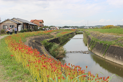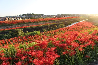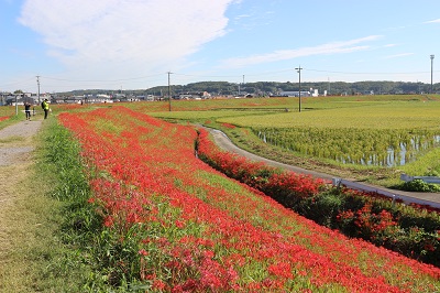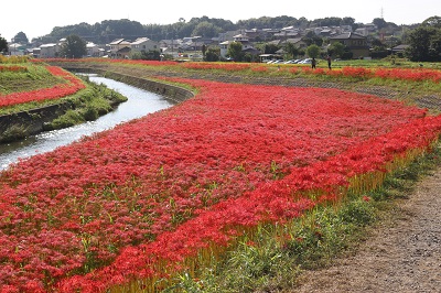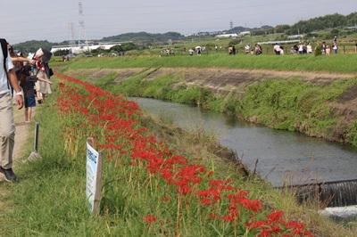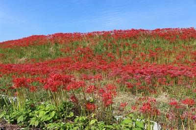 コロナ禍以来3年ぶりに「ごんの秋まつり」が開催され、彼岸花も見事に咲きそろいました。2022年の見頃は9月27日、28日ごろで、お彼岸よりも遅くなりましたが、9月20日ごろから咲きだしたところもあり、10月の頭には全体的に枯れかけていました。