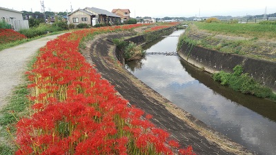 半田側の川沿い