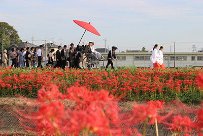 花嫁行列と彼岸花。
