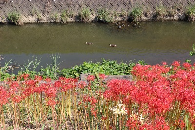 川沿いも綺麗に咲いています。