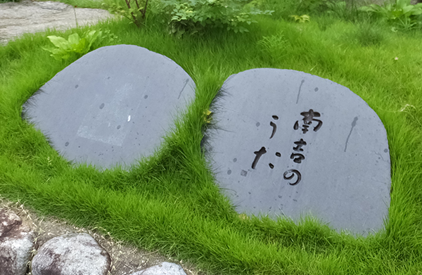 ※碑に刻まれているのは、南吉が小学校の卒業式で読んだ答辞に入っていたと伝えられる句です。南吉の創作か引用かは不明です。(江戸時代の俳人の句に「たんほゝや幾日踏まれてけふの花」というよく似たものがあります)