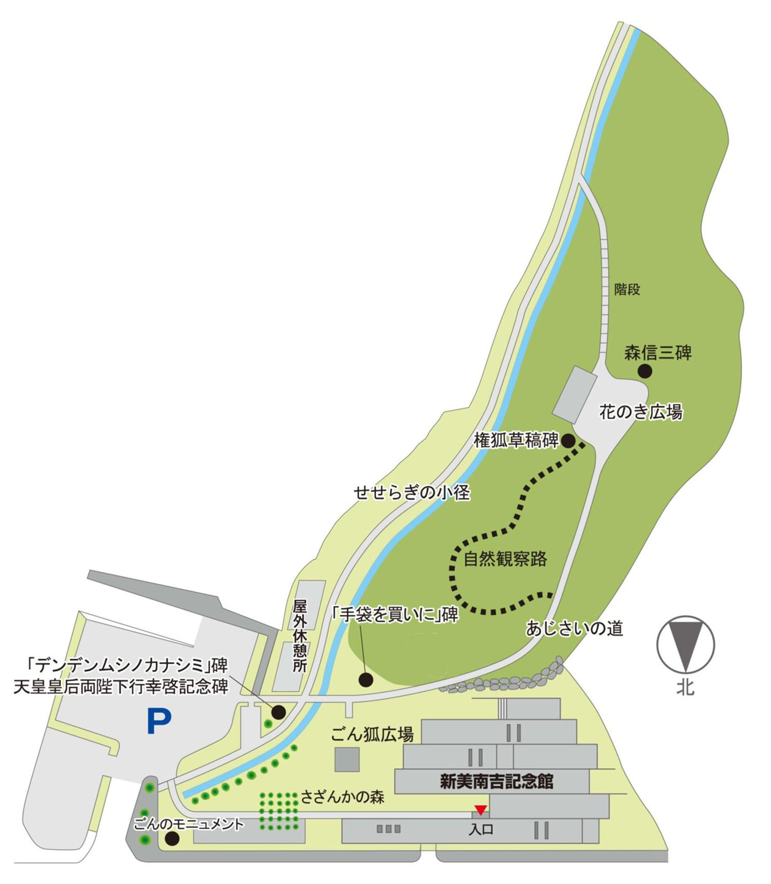 その自然・風景の一つが、記念館に隣接する「童話の森」です。現在遊歩道として整備されているその場所は、童話「ごんぎつね」に登場する中山さまの城跡と言い伝えられてきた場所であり、南吉文学に描かれた里山の自然に触れられる森として、市民の方に愛されています。ご来館の際には、ぜひ一度歩いてみてください。